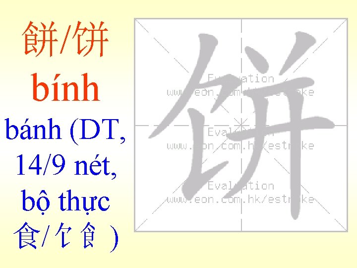 餅/饼 bính bánh (DT, 14/9 nét, bộ thực 食)