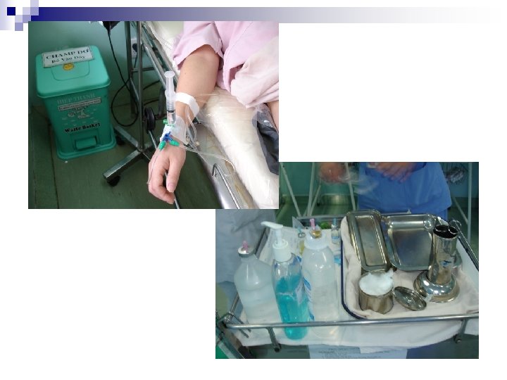 Thuốc và dịch truyền bị nhiễm n Dung dịch dùng nhiều lần. n Quy trình pha thuốc hở không đảm bảo vô khuẩn. n Môi trường tiến hành pha thuốc dễ lây nhiễm. Vonberg, R. P. and P. Gastmeier, Hospital-acquired infections related to contaminated substances. J Hosp Infect, 2007. 65(1): p. 15 -23. 33