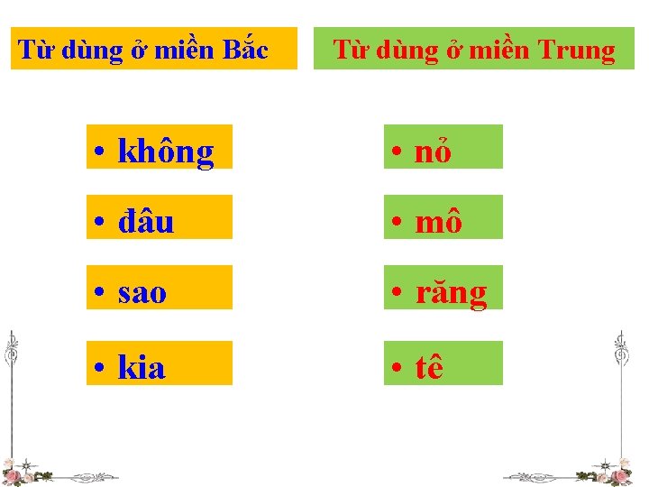 TỪ NGỮ: TỪ ĐỊA PHƯƠNG DẤU CHẤM HỎI, CHẤM THAN MiÒn B¾c MiÒn Trung MiÒn Nam