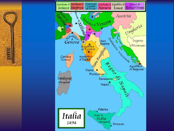 Tipi di principato e loro modalità di acquisizione Repubblica Ereditario o naturale (facile a mantenersi) Stato Principato Nuovo In parte Del tutto “Ma nel principato nuovo consistono le difficultà” (Il Principe, III)