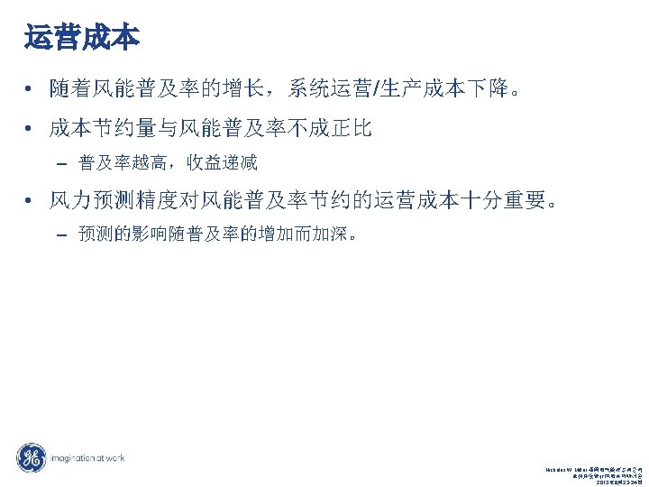 成本节约(百万美元) 运营成本节约 (百万美元) Nicholas W. Miller, GE Energy Consulting Nicholas W. Miller, 通用电气能源咨询公司 ADB Wind Integration Workshop 亚洲开发银行风电并网研讨会 September 23 -24, 2013年 9月23 -24日