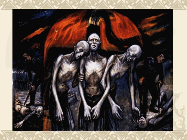 “Their Last Steps” What is happening in this picture? Three Muselmänner support each other as they falter toward the gas chamber. Muselmann was the camp term for those whose physical and mental exhaustion made them candidates for “selection. ” What stands out to you in the picture? Why do you think Olère chose to depict these men with their arms interlocked? [ Back to Art Menu ] [ Back to Main Menu ]