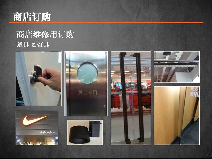 NIKE Nike DTC Operations Facility Team 20211231 11 Slides: 30 Download presentation NIKE零售店小新培训手册 Nike DTC Operations Facility Team 2021/12/31 11 我们的团队 �� 保� 快� 设备及 维修 供应商 付款 Luke Zhang Vivian Xing Jason Zhang Richard Xu Facility Team Tracy Xia 2021/12/31 22 我们的运动员 189 200 145 180 160 121 140 120 NS 100 NFS 80 60 40 13 18 FY 13 FY 14 25 20 0 2021/12/31 FY 15 Plan 55 商店快递介绍 2021/12/31 14 14 商店保洁介绍 2021/12/31 17 17 商店保洁 2021/12/31 18 18 设备及维修 2021/12/31 20 20 设备及维修 IT 2 400 -120 -2386 PP GC. DTC. Maintenance@nike. com 2021/12/31 PP团队 Facilit y 21 21 设备及维修 陈列道具—Facility 照明灯具—Facility 2021/12/31 22 22 设备及维修 画框道具—Facility 墙面粉刷—Facility 2021/12/31 25 25 设备及维修 BE NIKE WAY 2021/12/31 30 30