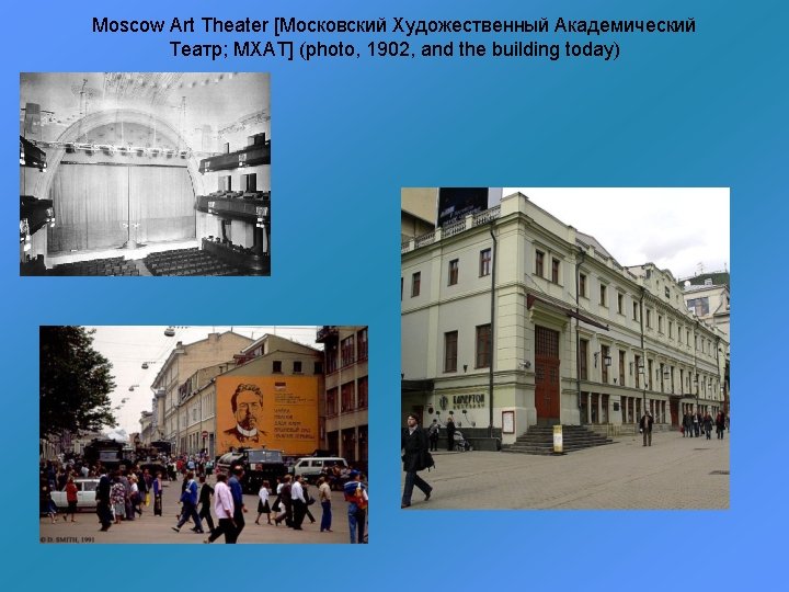 Chekhov reading The Seagull (Stanislavsky over his shoulder); Stanislavsky in The Seagull and in Uncle Vanya; Stanislavsky, 1938