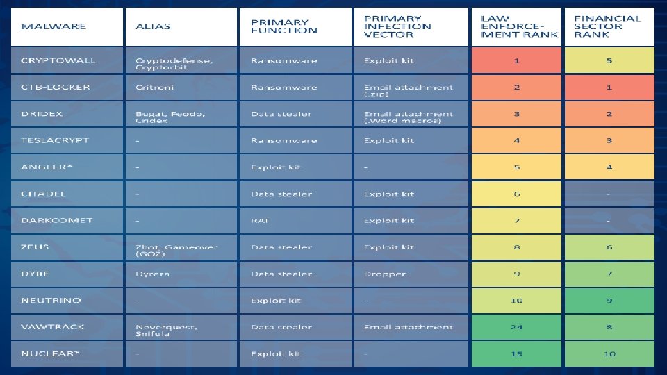 Izvori: • ENISA – European Network Information Security Agency • Pregled prijetnji informacijskoj sigurnosti • EUROPol • Internet Organized Crime Assessment 2016 • Octopus Cybercrime zajednica Vijeća Europe • Podaci iz industrije