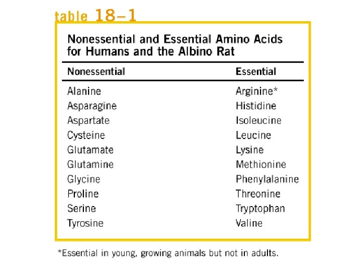 Biosynthesis of amino acids • All amino acids are derived from intermediates in glycolysis, the citric acid cycle, or the pentose phosphate pathway. • Nitrogen enters these pathways by way of glutamate and glutamine. Whereas most bacteria and plants can synthesize all 20 amino acids, mammals can synthesize only about half of them. • These are the nonessential amino acids, not needed in the diet. The remainder, the essential amino acids, must be obtained from food.