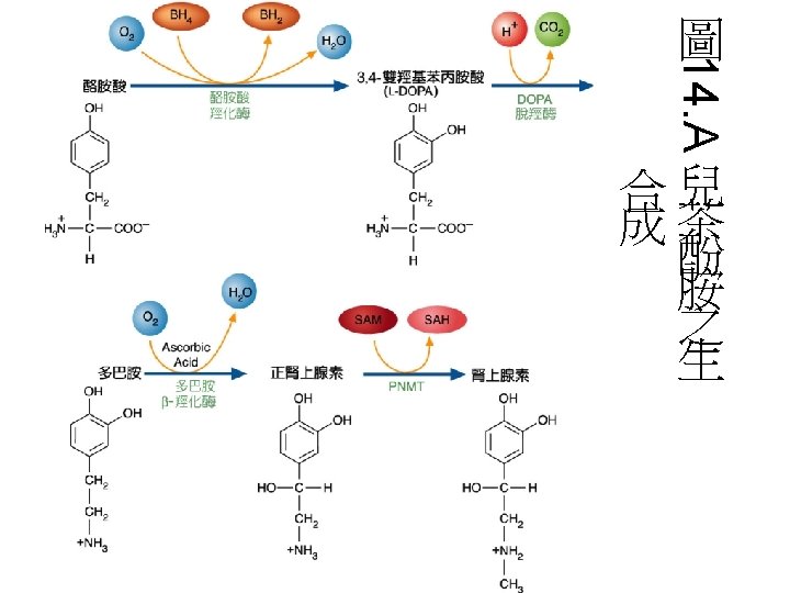 胺基酸的合成(synthesis of the amino acid) • 在動物中所有的NAA是由glycerate-3 phosphate、pyruvate、 -ketoglutarate 或oxaloacetate合成而來。另外tyrosine 是由phenylalanine合成而來。