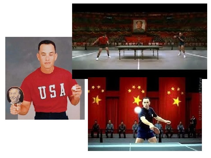 China invited an American ping-pong team to play in a tournament. Kissinger used that opportunity to work behind the scenes, talking with Chinese leaders and ironing out sensitive issues. Chinese and American players training together