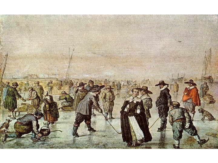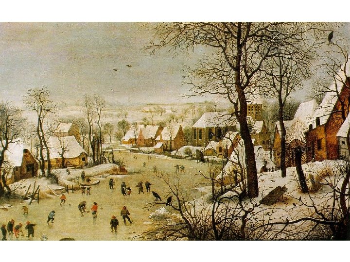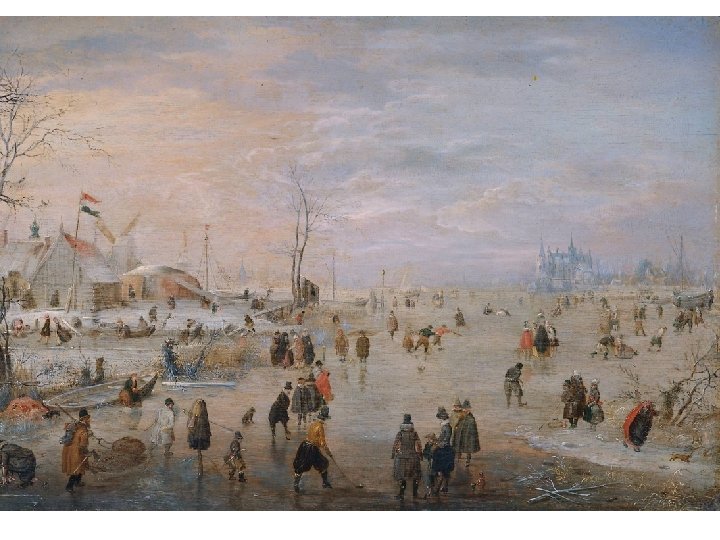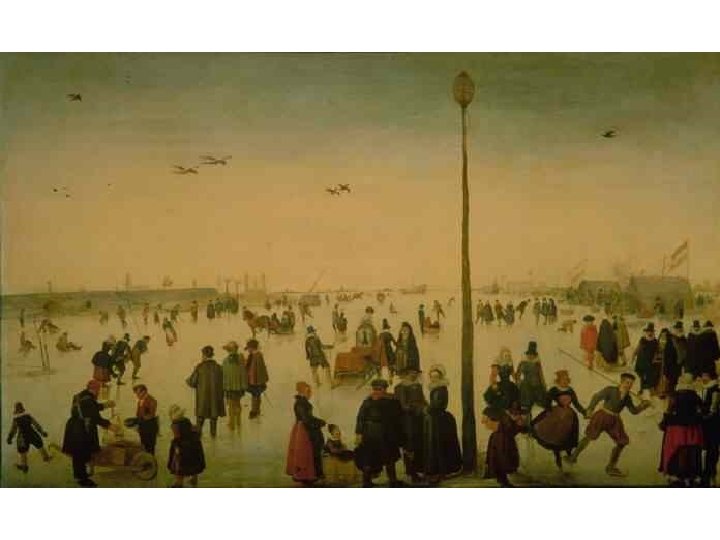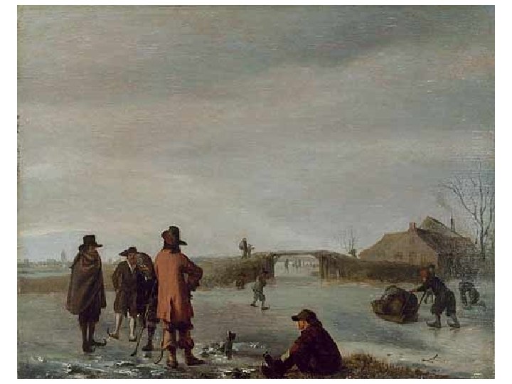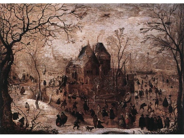 Hendrick Avercamp (15851634) • Narozen v Amsterodamu, s rodinou se stěhuje do Fríska a Kampenu, kde se jeho otec stal lékárníkem. • Hendrick byl údajně němý a malířství bylo pro něj jedinou možností, jek se vyjádřit. • „nemluva z Kampenu“ školen u umělce dánského původu. • Téma jeho života: • Zimní krajiny a bruslařské výjevy • Nerespektoval pravidla perspektivy