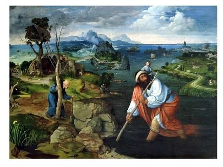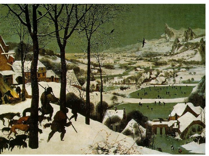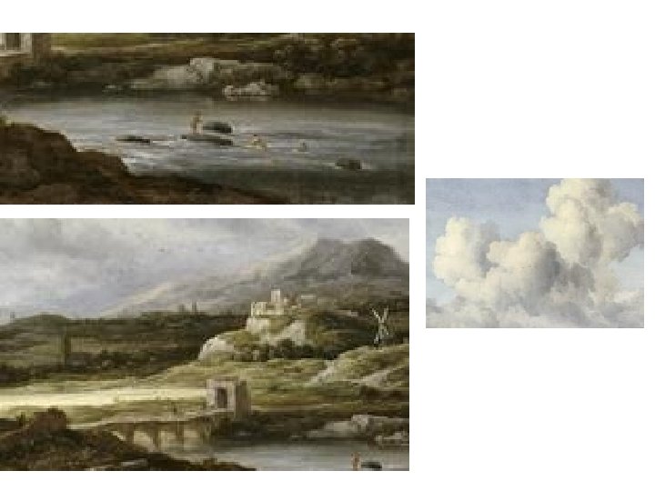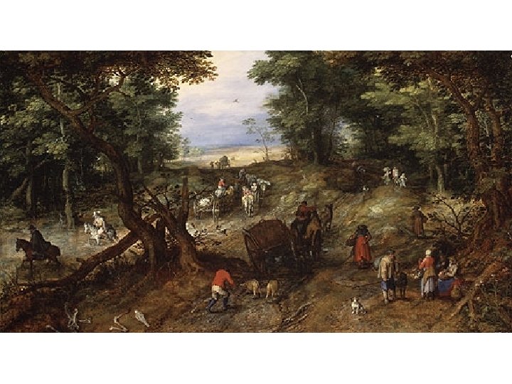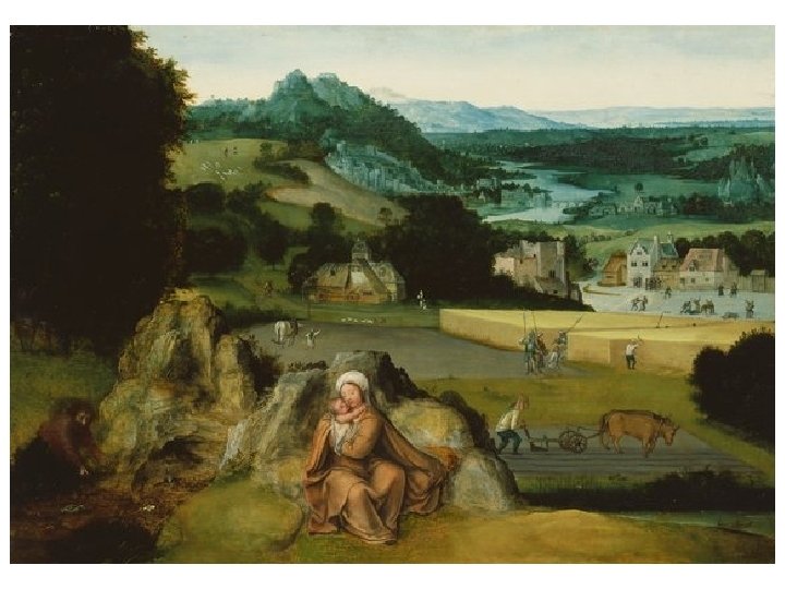 Nizozemská koncepce krajinomalby • Počátek 17. století • Krajiny, městské scenérie, maríny • Rozdíl v pojetí krajinomalby v severní a jižní Evropě • Italská = klasicistní, lineární perspektiva • Vlámská = barevná perspektiva • Tradice vlámské krajinomalby • Joachim Patinir (1480 -1524) • Durer, Bosch, Brueghel starší, Brueghel sametový