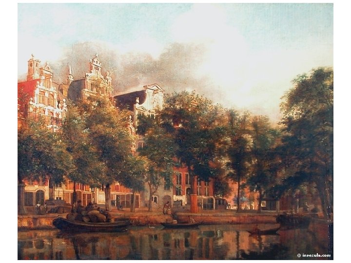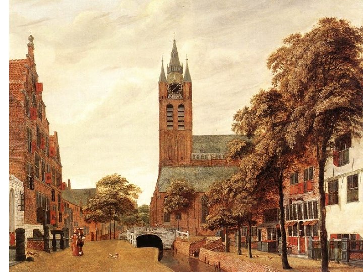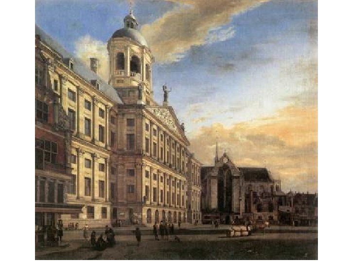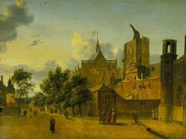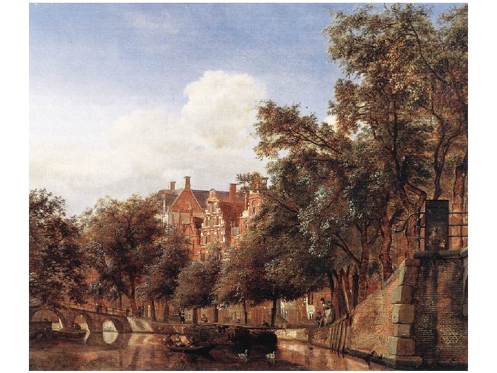 Jan van der Heyden (1637 -1712) • Původ: rodina obchodníka s obilím, usazen v Utrechtu • Jan se zprvu věnoval malování na skle • Později maluje veduty a městské scenérie • Život v Amsterodamu • Vytvořil také krajinomalby, převažují však u něj městské scenérie • Sám maluje pouze město, realizaci postav na plátně svěřil jiným