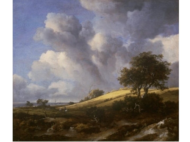 Jacob van Ruisdael • Malířská rodina • Salomon se zaměří na krajinářskou malbu, rád maluje písečné duny • Jacob neváhá s výběrem povolání a r. 1648 je přijat do cechu sv. Lukáše v Haarlemu • Cestuje po Nizozemsku a Amsterodamu • Otevře si ateliér a jeho obrazy jdou dobře na odbyt