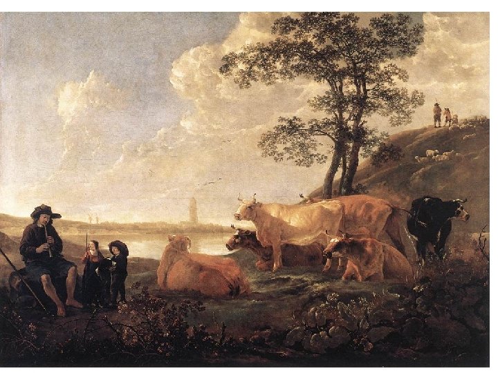 Albert Cuyp (1620 -1691) • Krajiny italského typu • Pracoval v Rembrandtově okruhu, žil v Dordrechtu • Inspirován Janem van Goyenem • Portréty na pozadí krajiny a městské scenérie
