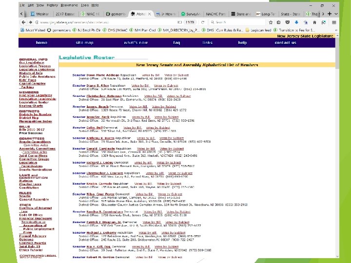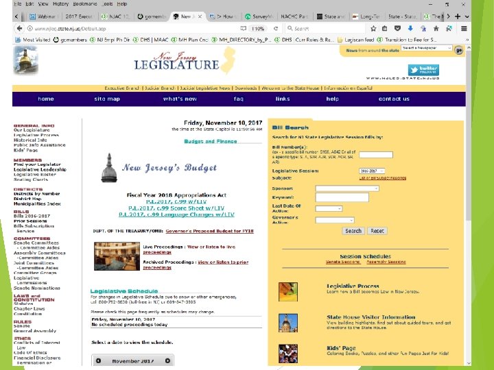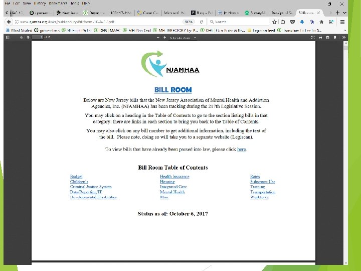 Resources NJAMHAA website: www. njamhaa. org Advocacy: Advocacy Resources Current Advocacy/Issues Legislation (including State Budget) Partners in Advocacy NJAMHAA in the News: News Stories Op-eds Letters to the Editor Press Releases New Jersey Legislature website: www. njleg. org for district, addresses, calendars, Committee assignments, etc.