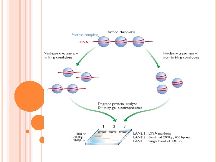DNA’NIN KROMOZOMLARDA PAKETLENMESİ Kromozomlar içerdikleri DNA moleküllerinden çok daha kısadırlar. Bu nedenle DNA’nın kromozomlara paketlenmesi için hayli organize bir paketleme sistemi gereklidir. Ökaryotlarda DNA kromatin şeklnde düzenlenmiştir. DNA paketlenmesi ile ilgili ilk veriler 1970’lerde biyokimyasal analizler ve EM çalışmalarından elde edilmiştir. İlk bilgiler DNA’nın DNA-binding proteinler olarak da bilinen histonlar ile ilişkili olduğu idi. Ancak ayrıntılı yapı bilinmiyordu. 1973 -74 yıllarnda birkaç araştırma grubu kromatinler (DNA-histon kompleksi) üzerinde nüklease protection assay’i yapmışlardır. DNA-histon kompleksi enzimlerle muamale edildiğinde DNA sadece histon proteinlerinin yer almadığı bölgelerden kesilmiştir. Yaklaşık 200 bç uzunluğunda pek çok fragment oluşmuştur. Bu gözlem enzimatik parçalanmanın gelişigüzel olmadığını göstermiştir.