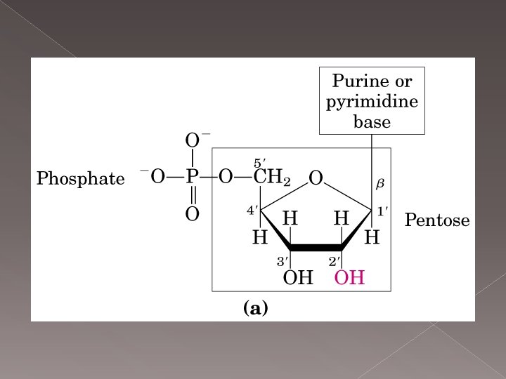 Nükleik Asitler üç yapıda organize olurlar: I. YAPI § Belirli tür ve sayıdaki nükleotidler belirli diziliş sırasına göre birbirlerine bağlanarak polinükleotid zinciri meydana getirirler. Nükleotidler arası bağlar 3’-5’ fosfodiester bağlarıdır. Pirimidinlerin 3 numaralı N atomu ile ribozun veya deoksiribozun 1. karbonu, β-N glikozid bağı ile bağlanmış ve pentozların 3. veya 5. karbonu fosforik asit ile esterleşmiştir. Riboz veya deoksiribozun karbon atomu 5’ veya 3’ şeklinde ifade edilir. Purinler 9. N atomları ile riboz veya deoksiribozun 1. karbonuna β-N glikozid bağı ile bağlanmış, pentozlarda 3. veya 5. karbon atomu fosforik asit ile esterleşmiştir.