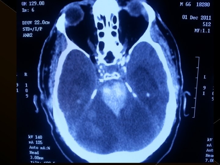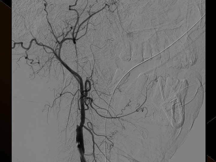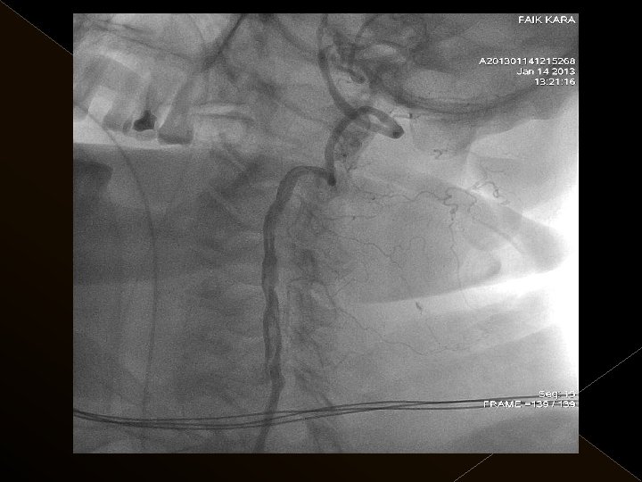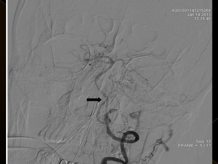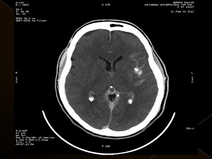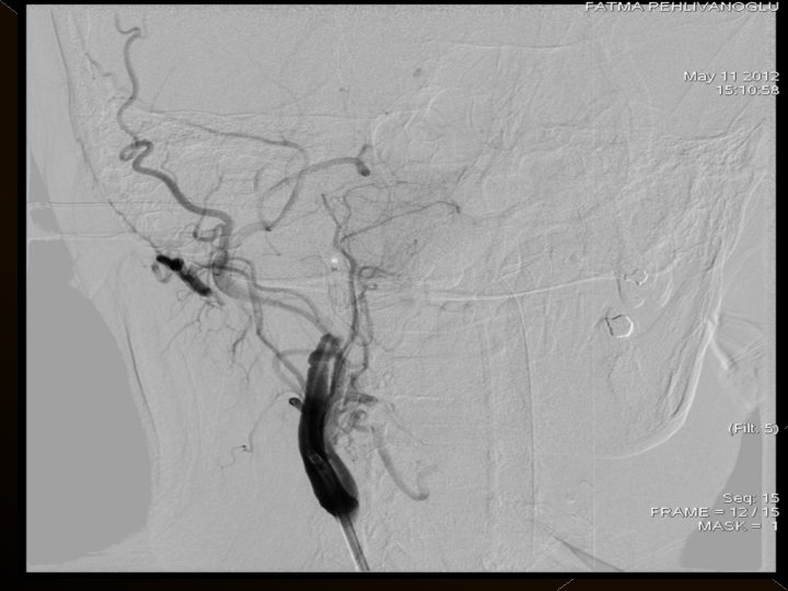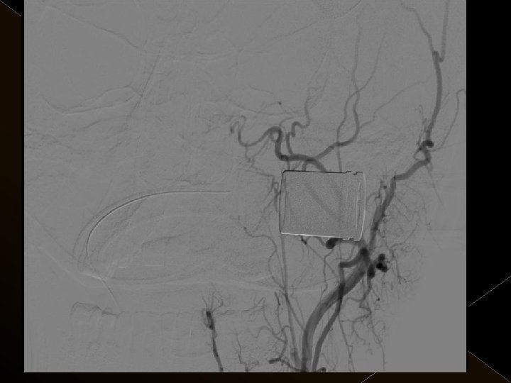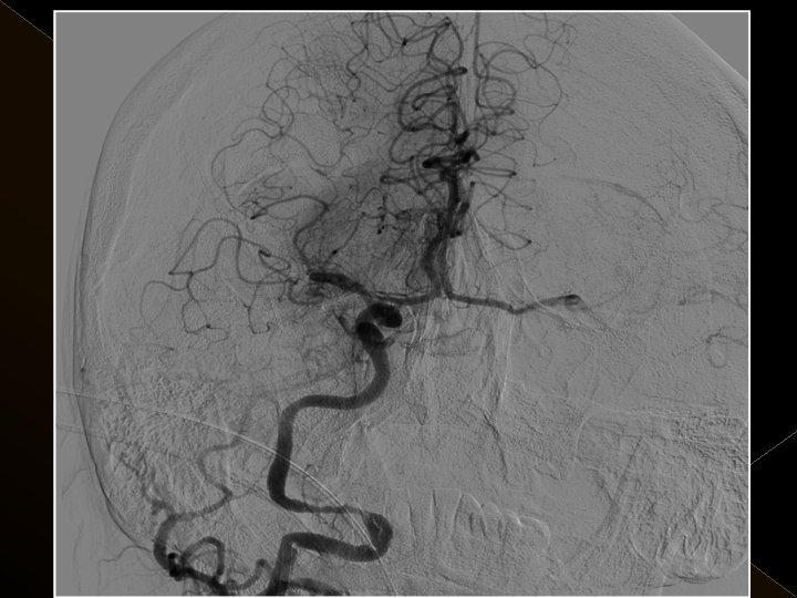 Uygulama � Toplam trombolitik ajan dozu: 0. 9 mg/kg , 0. 3 mg/kg’ lık bölümü intraarteriel işlemde � Tpa uygulaması sonrası 24 saat boyunca ek antikoagulan uygulanmadı. � İşlem sonrası kan şeker değeri 120 mg/lt de tutulmaya çalışıldı. � Endovasküler işlem sonrası KB tedrici düşme. KB 180/100 mm/Hg’nin üzerine çıkmadıkça müdahale edilmedi.