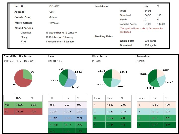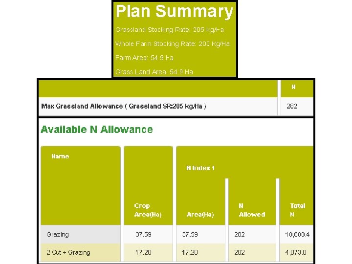 Dairy Farm example • 55 ha’s of a spring calving dairy herd 100 cows + replacements • Rivers, sloped fields and water abstraction points = no organic manures on plots 6 A and 7 (sloped and watercourses), plot 10 CSA, plots 11 -14 (Water abstraction points, river and high OM soils) • Stocked at 205 Np. H