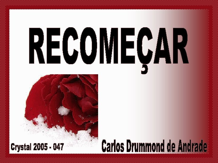 Não importa onde você parou! Em que momento da vida você cansou! O que importa é que sempre É possível e necessário recomeçar. RECOMEÇAR. . . É dar uma nova chance a si mesmo! É renovar as esperanças na vida! E o mais importante. . . acreditar em você de novo.