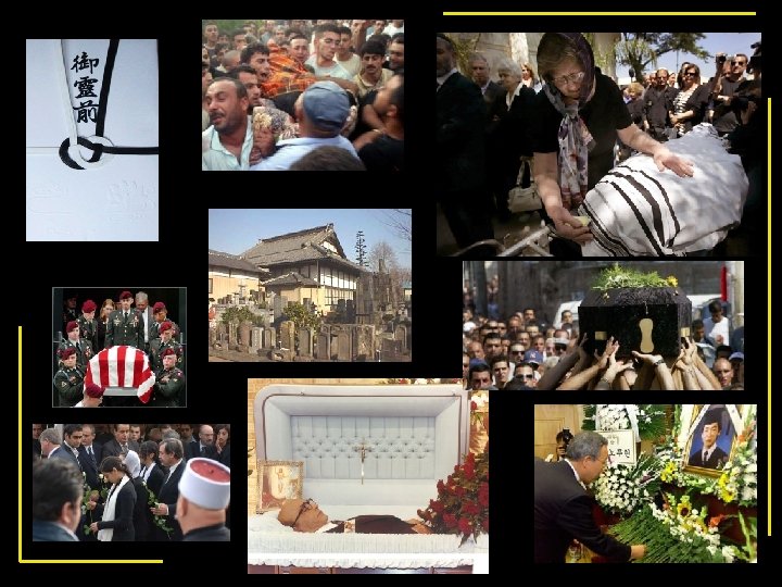 Attitudes towards death • • • Is death the end of life? Is death the beginning of a new cycle? What are we mourning? What are we celebrating? What is the meaning of these ceremonies?