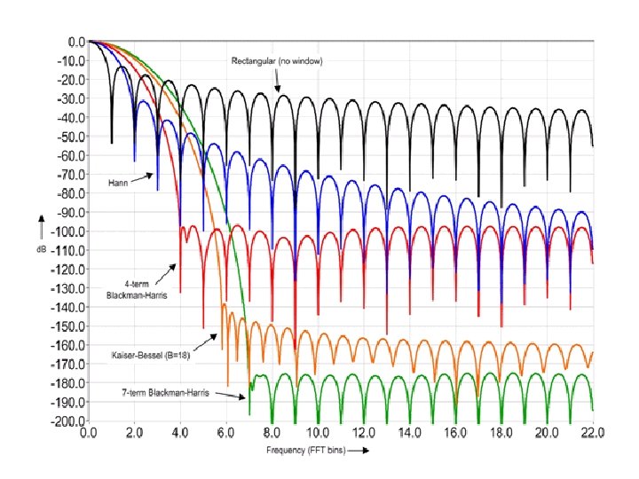 Compare: Hamming to Hanning Hamming Hanning: Faster roll of; Hamming: lower first lobe
