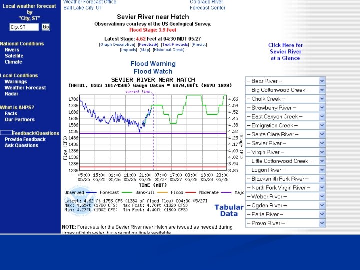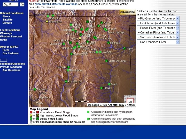 Advanced Hydrologic Prediction Services – AHPS Improving Hydrologic Services • Improving dissemination • • More graphics More standard formats Better use of the Internet User friendly