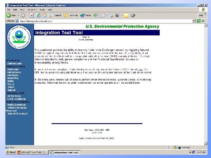 Test Tools https: //test. epacdxnode. net/test/ • The ability to test any Node in the Exchange Network, by triggering Network WSDL-compliant requests on that Node. • If a test is passed, it is very likely, the Node will be interoperable with other Network WSDL-compliant Nodes. • Intended to verify general compliance with the Functional Specification, focuses on interoperability among Nodes. : – interactive tests – automatic tests.