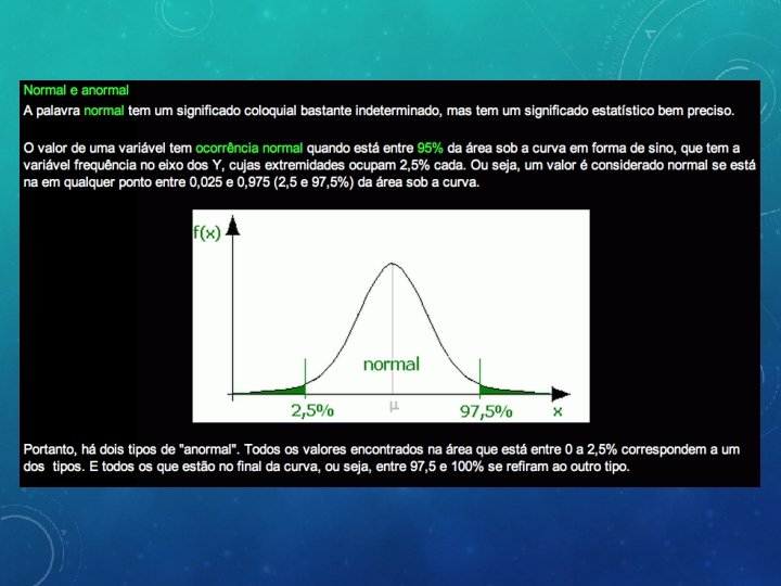 DISTRIBUIÇÃO NORMAL • Se desejarmos um nível de confiança muito alto (superior a 99%) aplica-se a fórmula dos três desvios.