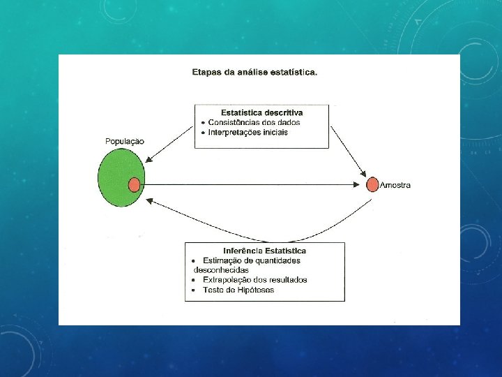 • Em Estatística, a palavra população tem um significado muito mais amplo do que no vocabulário comum. • • Exemplos: A população de interesse pode ser todas as lâmpadas produzidas por uma fábrica, todo o sangue que corre no corpo de uma pessoa ou todos os habitantes de uma cidade, estado ou país.