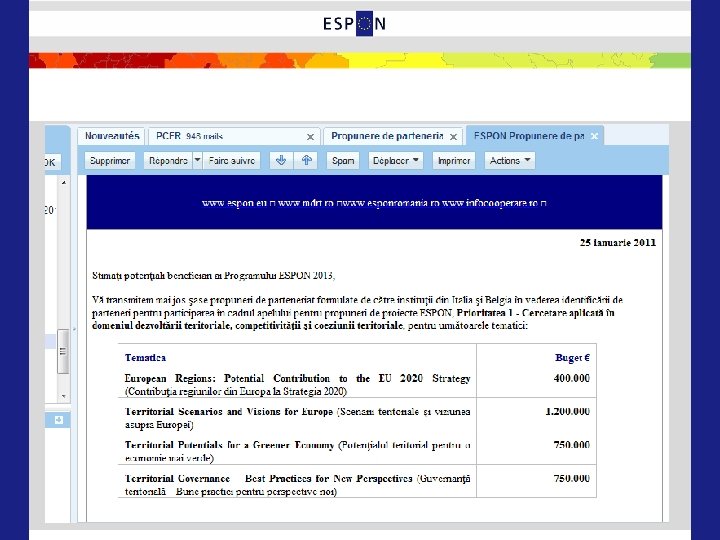 Minimul necesar: mini CV-ul instituţiei şi tema de interes în ESPON (în limba engleză)