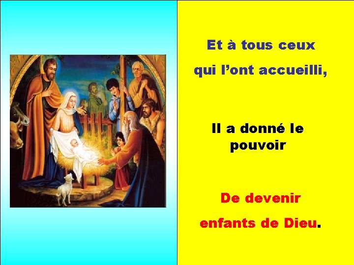 Et à tous ceux qui l’ont accueilli, Il a donné le pouvoir De devenir enfants de Dieu.