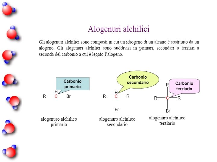 Alcani a catena ramificata n Gli alcani a catena ramificata presentano dei sostituenti che vanno a sostituire atomi di idrogeno nella catena lineare. n Questi sostituenti sono detti radicali (o gruppi ) alchilici. Radicali alchilici