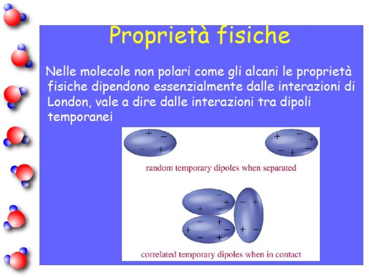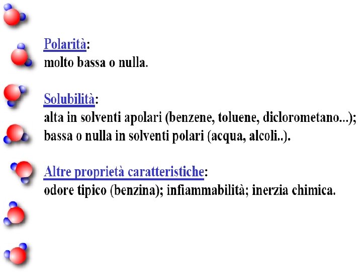 n A temperatura e pressione ambiente i più leggeri tra loro (fino a 4 atomi di carbonio) sono gassosi, sono liquidi incolori quelli aventi da 5 a 16 atomi di carbonio, sono solidi cerosi quelli più pesanti. n Gli alcani, soprattutto i più leggeri, vengono largamente impiegati come carburanti per via dell'elevata entalpia di combustione per unità di massa, della notevole inerzia chimica e dell'abbondante - ma non illimitata disponibilità sulla Terra.