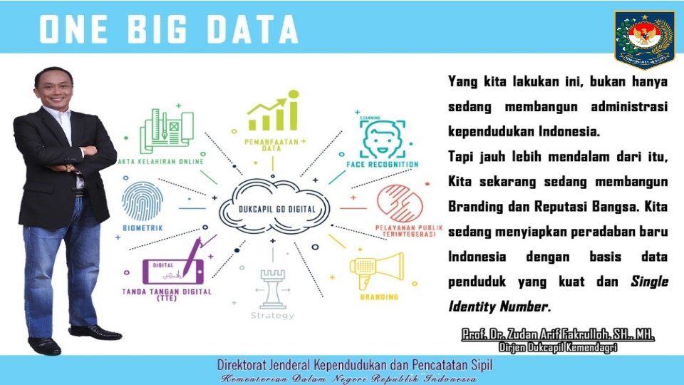 KEBIJAKAN SIN Single Identity Number 1 Penduduk NIK KTP-el Tata Kelola Yang Dituju KEBIJAKAN ONE DATA POLICY & CONNECTED Optimalisasi Pemanfaatan NIK : INTEGRASI DAN BANGUN EKOSISTEM NO BPJS HP BUKU NIKAH SIM NIK PLAT NISN CIF PASPOR BANSOS