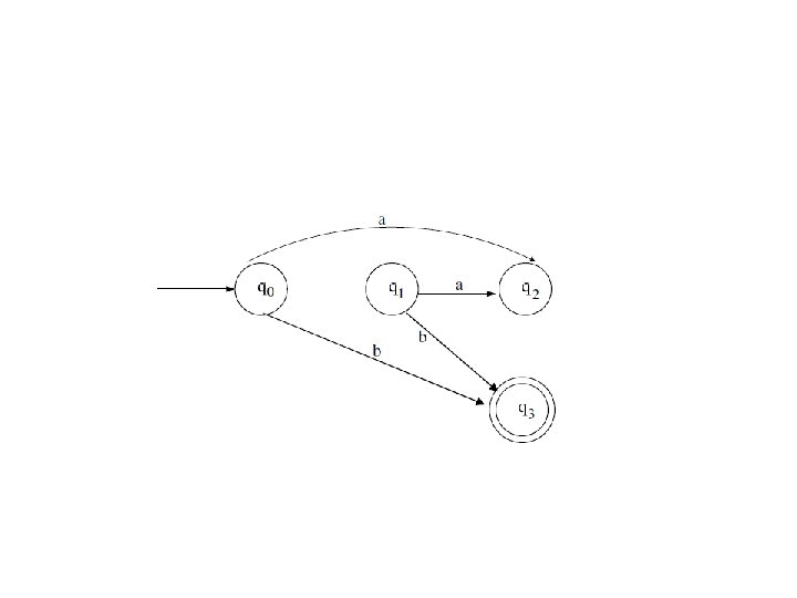 Ekuivalensi Non – Deterministic Finite Automata dengan Є – Move ke Non. Deterministic Finite Automata tanpa Є-Move • Dari sebuah Non-Deterministic Finite Automata dengan є – move dapat kita peroleh Non– Deterministic Finite Automata tanpa є – move yang ekuivalen. • Contohnya, bila kita punya NFA є – move, seperti pada gambar di bawah ini.