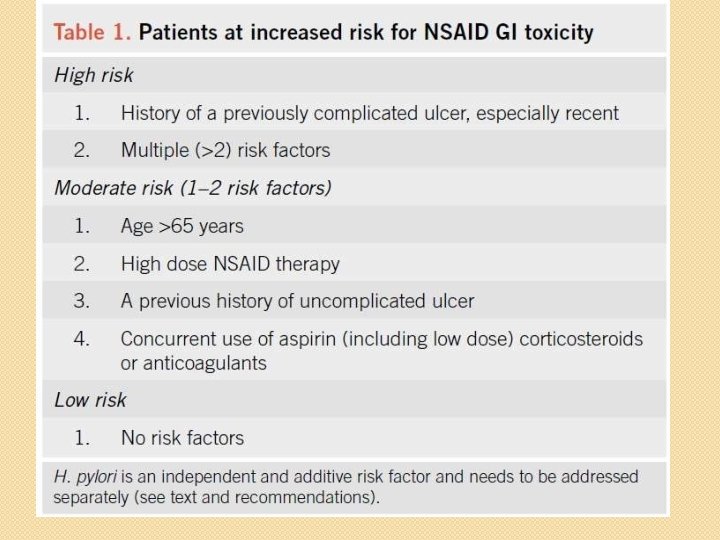 Adverse effects • GIT – Nausea, vomiting, dyspepsia, epigastric pain, acute gastritis, ulceration and GI bleeding. – Ulcerogenic effect is the major drawback of NSAIDs, which is prevented/minimized by taking: • NSAIDs after food. • proton pump inhibitors/H 2 -blockers/misoprostol with NSAIDs. • Coated aspirin. • selective COX-2 inhibitors.
