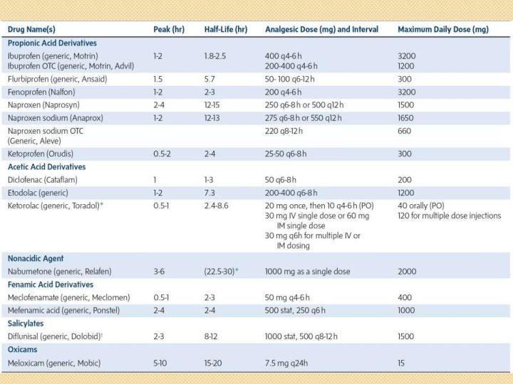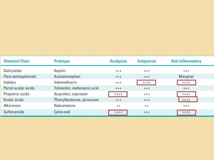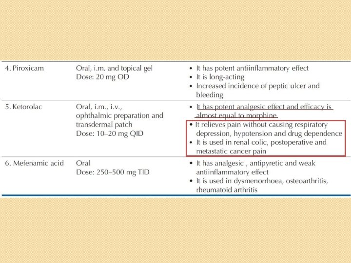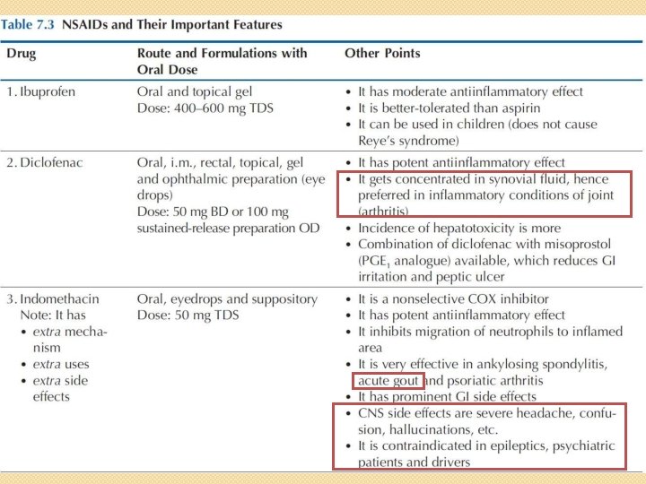Other NSAIDs • They have similar mechanism of action, pharmacological actions, therapeutic uses and adverse effects. • They vary mainly in their potency, duration of action, analgesic and antiinflammatory effects.