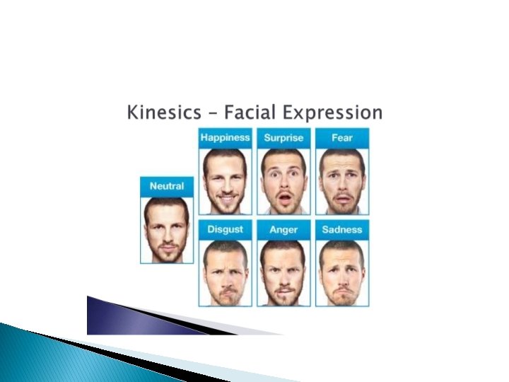 Kinesics is the use of facial expressions, gesture, and posture. For example, when and how to smile varies from culture to culture: o To many other cultures, the American smile often appears frozen and insincere. o In Japan, men do not smile in public, and women are not supposed to show their teeth. Japanese will often cover their mouths when laughing. o Germans smile less often than Americans. The Germans believe that life is doing one’s duty, and duty does not lend itself to smiling. o Koreans consider it inappropriate for adults to smile in public. The smile is often a sign of embarrassment.