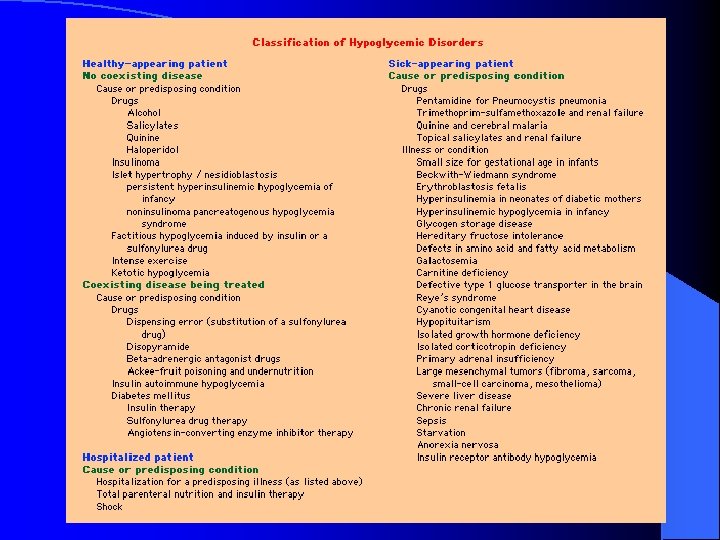 Whipple’s Triad Koch’s postulates of Hypoglycemia l Symptoms l BS < 2. 8 m. M l Resolution of symptoms with CHO