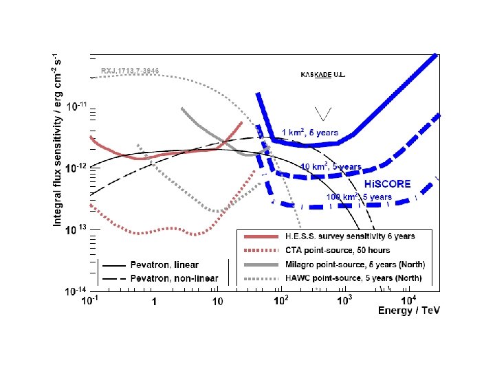 Search for the Acceleration Limit of Galactic Sources - Energy range 1016 -1018 e. V demands: - 1 km² with spacing smaller than that at Auger - complementary techniques - KASCADE-Grande - Ice. Top/Ice. Cube - Tunka-133 (calorimetric) - NEVOD-DÉCOR - Auger low energy extension - SCORE -LHAASO terminated 100% ready in operation 80% ready planned Tunka-133 Ice. Top Ice. Cube ? CR from SNR CR from AGN