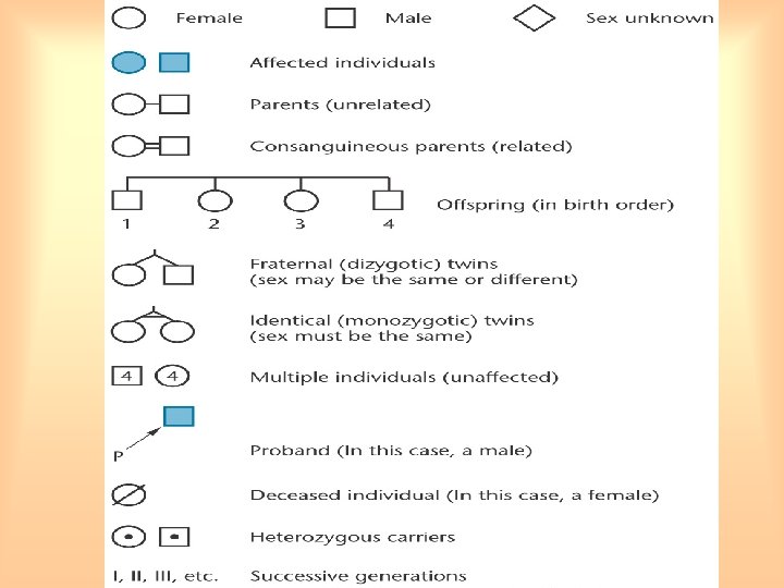 Pedigree Analysis • Method of tracking a trait through generations within a family. • Good method of tracking sex-linked traits as well as autosomal traits.