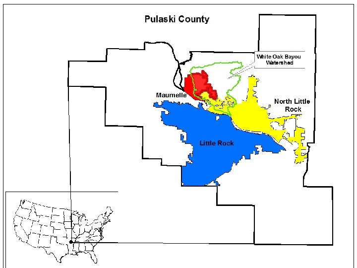 White Oak Bayou Stakeholders u City of Maumelle u Citizens of the Steering Committee u US EPA Region 6 u USACE Little Rock District u Arkansas Natural Resources Commission u Arkansas Department of Environmental Quality u University of Central Arkansas (UCA) u Arkansas Natural Heritage Commission u City of North Little Rock and Pulaski County http: //www. whiteoakbayou. com/