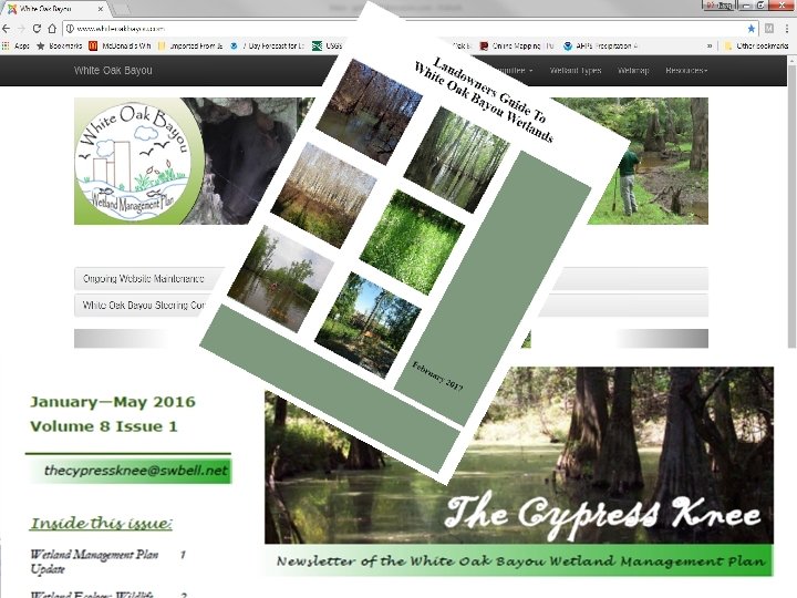 Education, Education……. • Partner with Schools • Trails Program • Booths at local events • Public forums • Wetland Hikes • Bayou Floats • The Cypress Knee