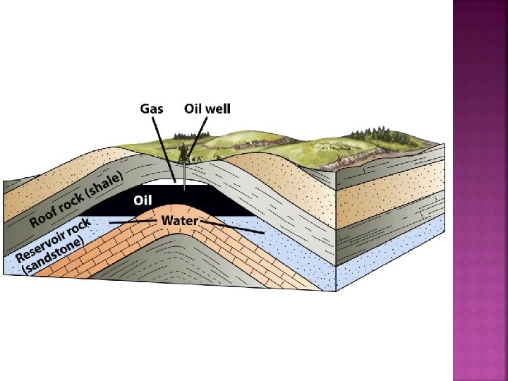 Petroleum is liquid fossil fuel Oil and natural gas form from marine phytoplankton Found where porous rocks are capped by nonporous rocks Accumulate at bottom of ocean floor Buried and heated until they became complex carbon molecules Found in porous rocks covered by nonporous rocks Makes up fuels, plastics, lubricants, tar, etc Pros: lots of energy, helps economies, many uses, easy to transport (pipeline) Cons: pollution (CO 2, sulfur, heave metals), oil spills, nonrenewable, plastics, foreign