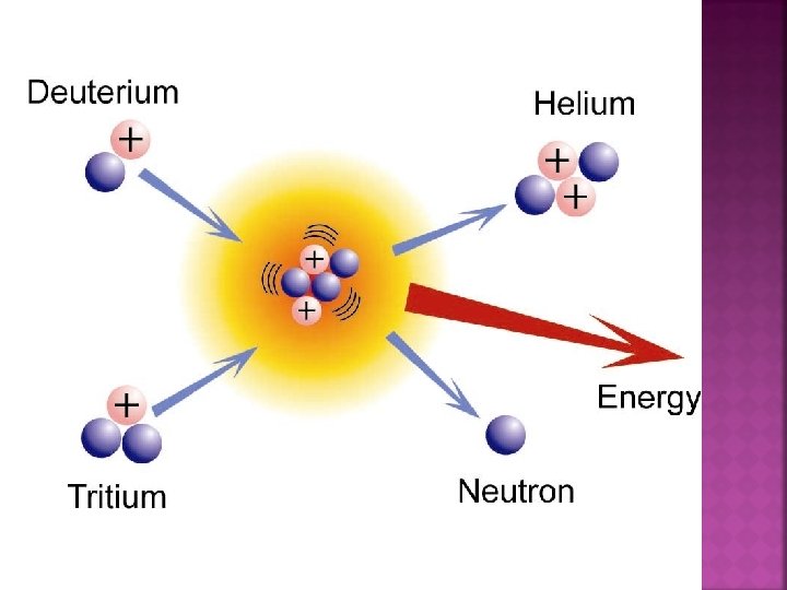Future is nuclear fusion, or the combing of nuclei This powers stars Unlimited source of energy Need temps of 180, 000 F Takes more energy to produce then return Cup of water could power a city for 100 years We’ve created it, but not contained