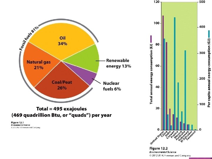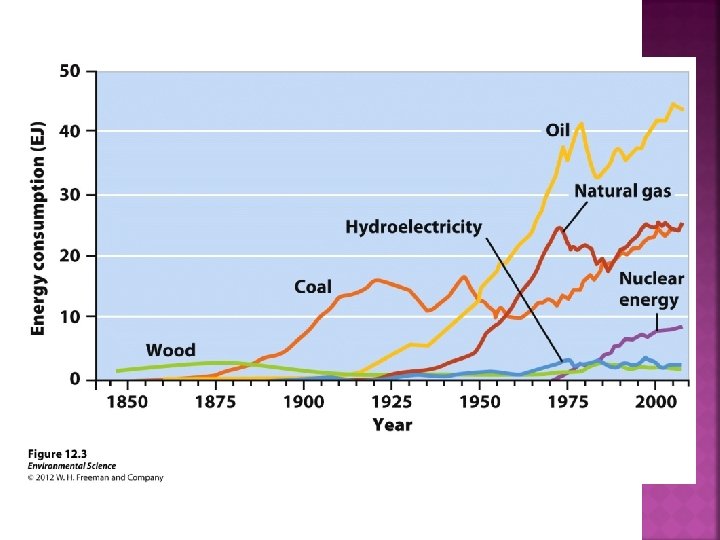 Nonrenewable resources cannot be replaced Fossil fuels are derived from biological matter (coal, oil, and natural gas) Nuclear is derived from radioactive materials Amount of energy use depends on availability and affordability Patterns of use in US Wood until 1875, than coal followed by natural gas and oil. Nuclear around 1950 and renewable in the 1970 s