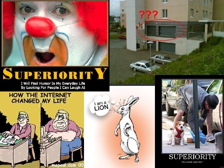 Superiority “It’s not my tragedy. ” • • We laugh when other people look foolish because it make us feel superior. The laugher looks down on what he laughs at. Enjoyment of other people’s mistakes When the Dodo wants to be respected, but when uses big words but obviously doesn’t really know what he’s talking about, he looks foolish.