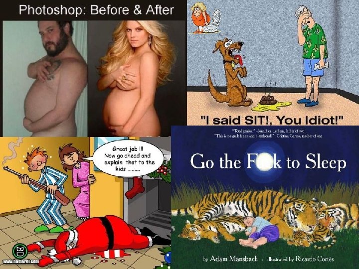 Release from social restraint We laugh when social rules are broken. Being shockingly crude. Bad language. Scatological humor: Poopoo peepee. A lot of sexual humor Defiance & Violence sometimes (It’s not • • funny if anyone we care about really gets hurt). The violence in the Duchess’s house. • – – “Speak roughly to your little boy And beat him when he sneezes. ”