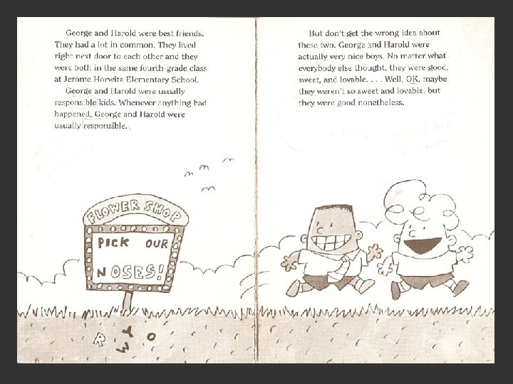 Captain Underpants Think about these questions as we read. • Where do you see nonsense? How do you react to it? • Do you like George and Harold? Why or why not? • Why do you think it has become immensely popular? • How are the rules of society inverted? (In what ways is it carnivalesque? )