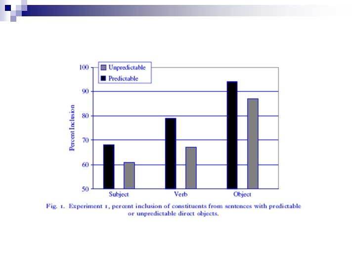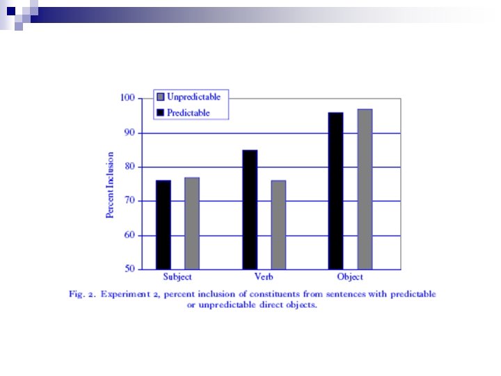Predictability Valian, V. Prasada, S. & Scarpa, J. 2006. Direct object predictability: effects on young children's imitation of sentences. Journal of Child Language, 33, 247 -269. n Predictability- It is easier to repeat sentences with highly predictable objects than sentences with less predictable objects. a. The dog chews a bone. b. The dog chews a crayon n Subjects: 24/23 two-year-olds (mean 28 month, range 25 -32) with TLD n Task 1: Sentence repetition 6 -8 morphemes. Task 2: Sentence repetition 6 -8 morphemes + a stickers game n